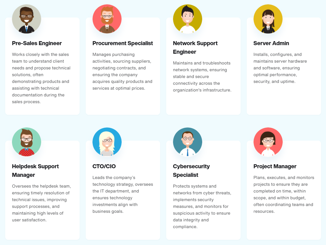 To tackle the complexities of IT today, you need an entire team of subject matter experts (SMEs) on your side. If you are understaffed or lack talent in some areas, we can fill the gap. Our engineers, technicians, and managers specialize in various subsets of business technology solutions. We deliver the skills and know-how needed to drive your business forward.